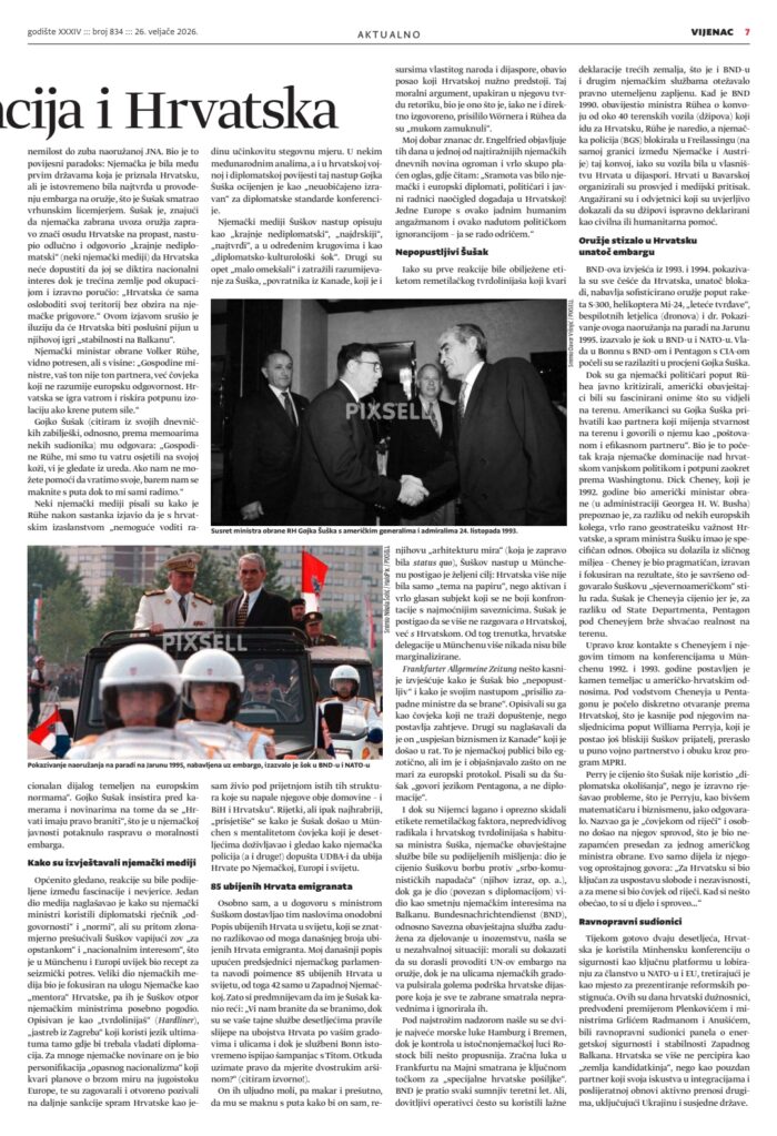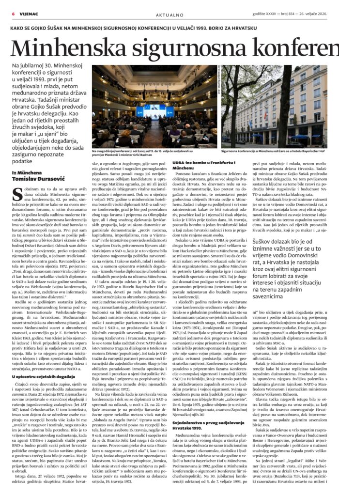 Dr. Tomislav Ðurasović u novom broju Vijenca- Kako je Šuškov beskompromisan nastup u Münchenu 1993. pridonio osiguravanju ravnopravnog međunarodnog položaja Republike Hrvatske.